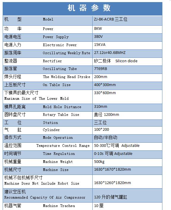 此機(jī)裝有高敏度5557防火花保護(hù)裝置,可以把模具發(fā)生火花的機(jī)率降低95%,對高周波模具和產(chǎn)品起到很大的保護(hù)作用。這臺機(jī)器可以單人操作,節(jié)約人工成本。它由振嘉機(jī)械設(shè)備有限公司專業(yè)制造,機(jī)器質(zhì)量已通過歐盟CE質(zhì)量出口檢測和ISO9001機(jī)器質(zhì)量檢測;